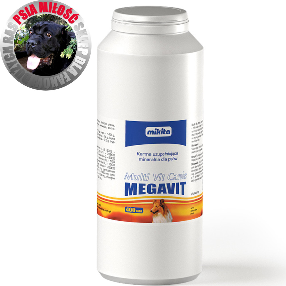 Mikita Megavit Multi Vit Canis 400 tabletek – kompleks witaminowo-mineralny dla psów aktywnych i rosnących