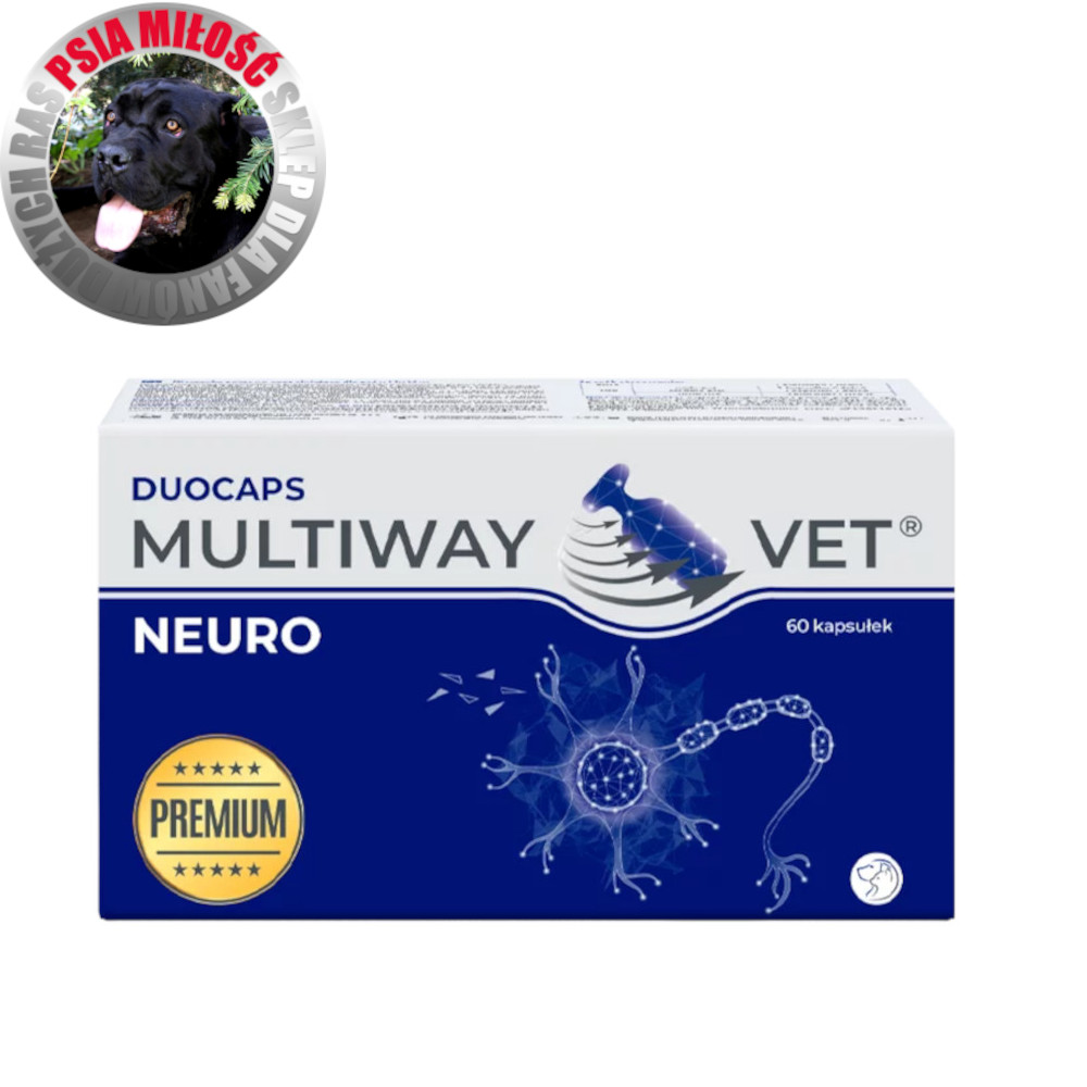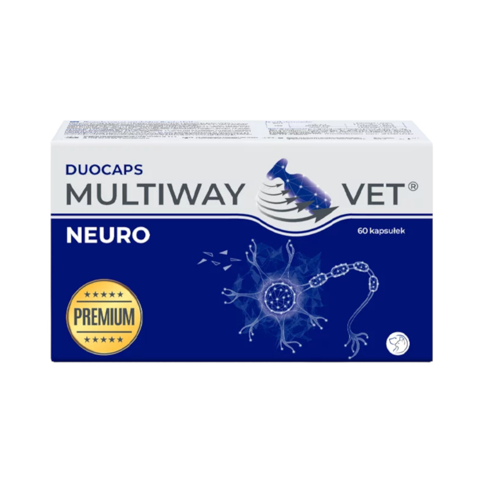 🔹 Multiway Vet Duocaps NEURO to specjalistyczny preparat weterynaryjny w formie kapsułek twist-off, opracowany z myślą o zwierzętach z problemami neurologicznymi. Dzięki synergicznemu działaniu składników aktywnych wspomaga pracę mózgu, regenerację neuronów i łagodzi objawy chorób układu nerwowego.