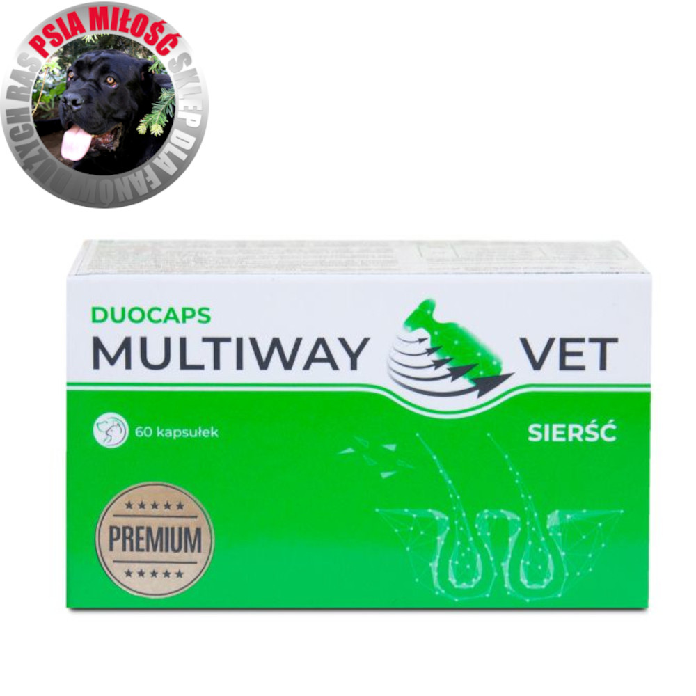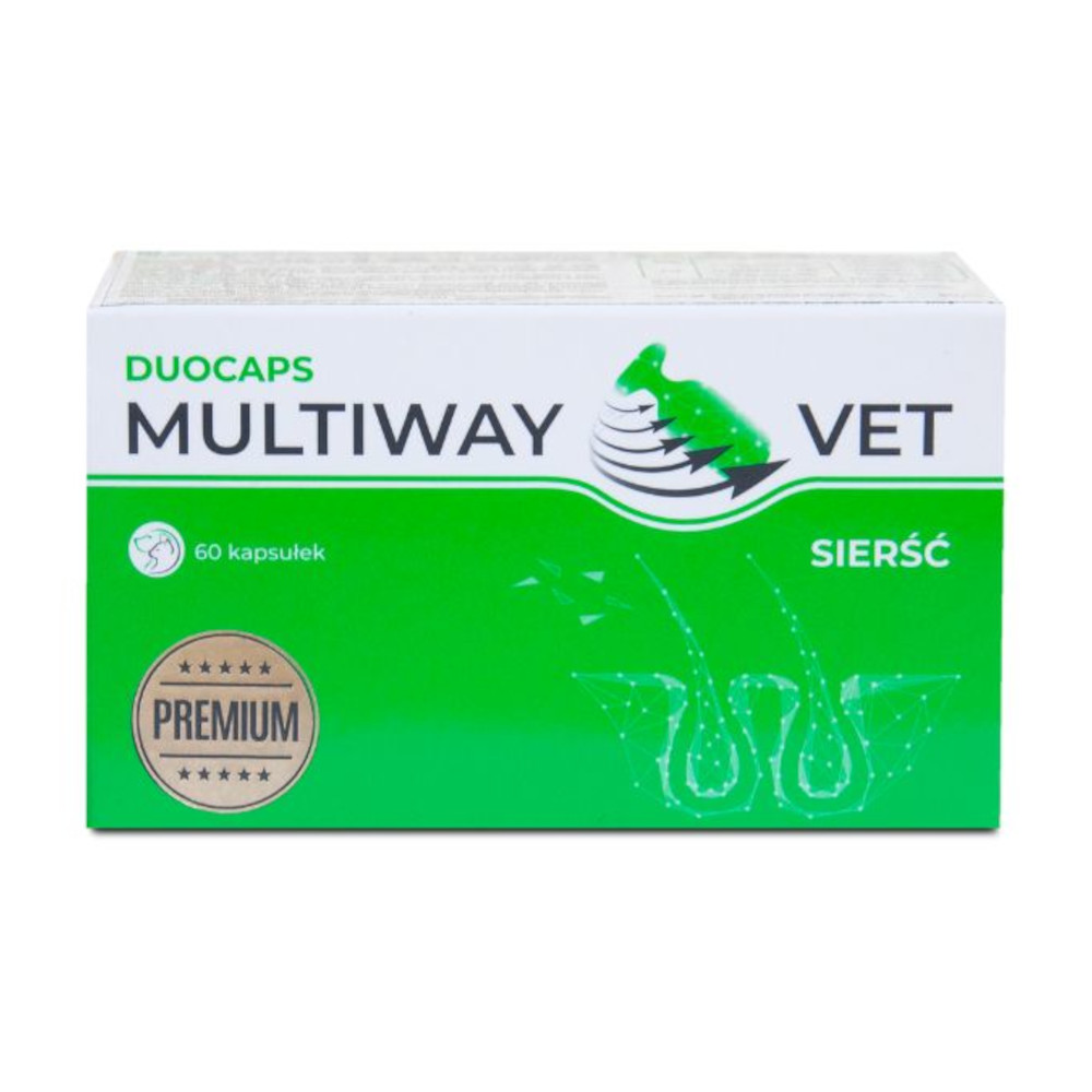 Multiway Vet Duocaps SIERŚĆ 60 kapsułek – Suplement na sierść i skórę dla psów i kotów | Blask, elastyczność, redukcja linienia