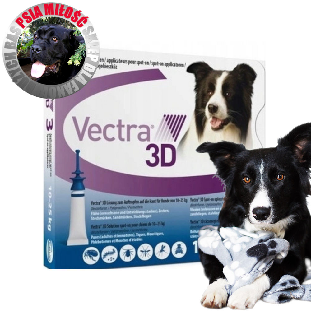 Skuteczna ochrona przed pasożytami zewnętrznymi dla psów średniej wielkości – wybierz preparat weterynaryjny w formie roztworu do nakrapiania, przeznaczony dla psów o masie ciała od 10 do 25 kg. Zestaw 3 pipet zawiera aktywne składniki: permetrynę, dinotefuran i pyriproksyfen, które zapewniają kompleksowe działanie bójcze i odstraszające.