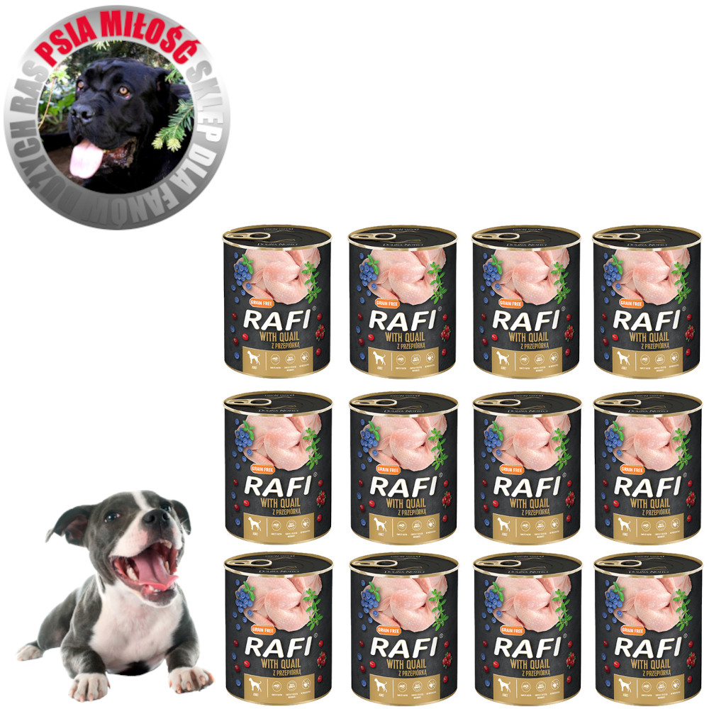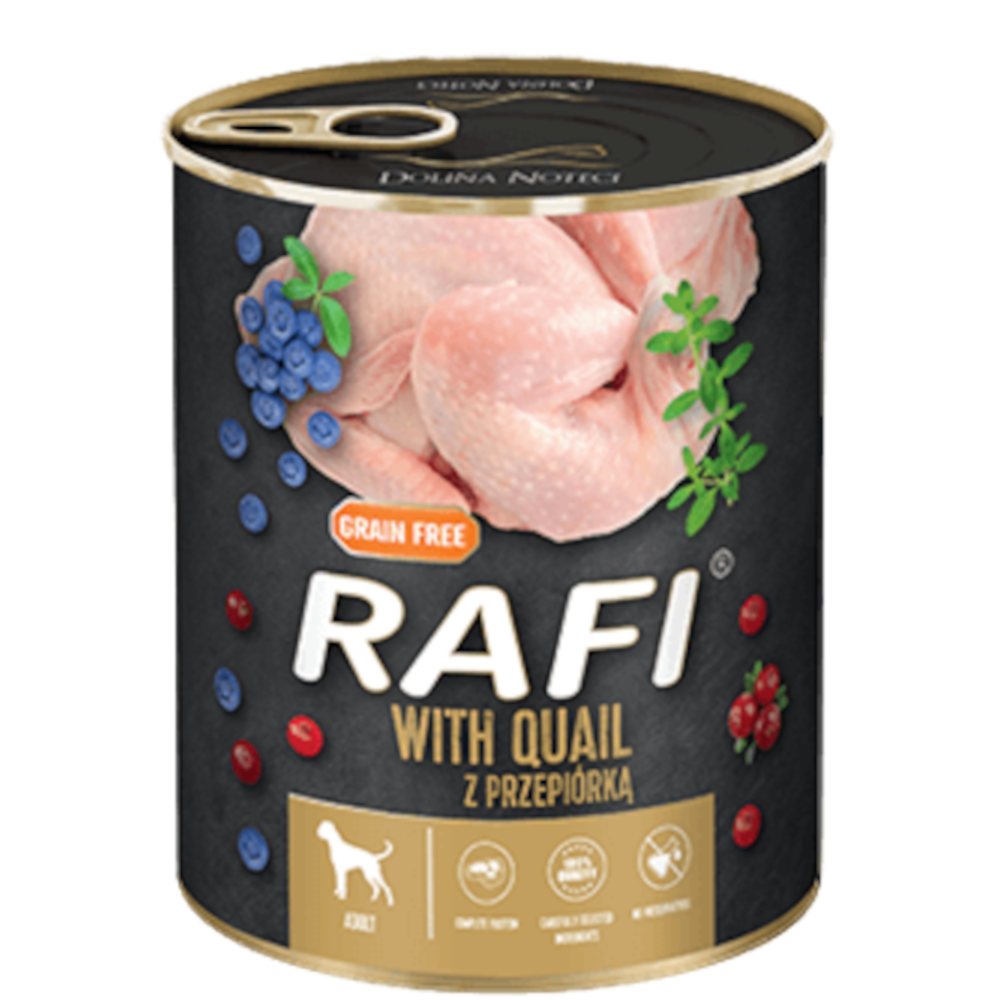 RAFI Adult Przepiórka 12×800g – mokra karma bezzbożowa z przepiórką, warzywami i ziołami dla psów dorosłych Dolina Noteci