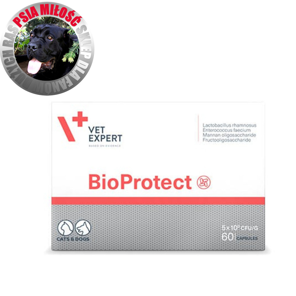 VetExpert BioProtect 60 kapsułek to probiotyk dla psów i kotów, wspierający prawidłową mikroflorę jelitową i procesy trawienne.